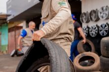 Força-tarefa recolhe cerca de 250 pneus e elimina focos do mosquito Aedes aegypti na Vila Jaiara